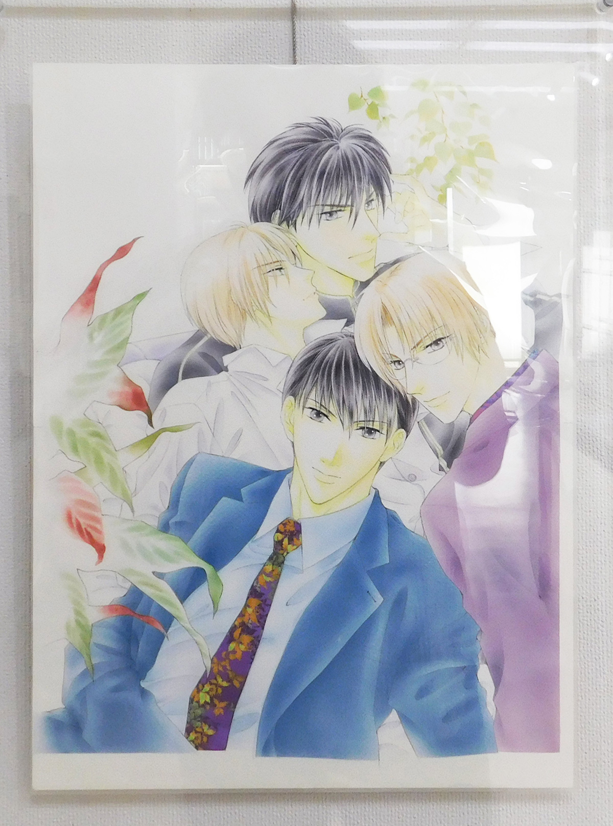 *1期にBL作品最初の単行本「僕達のはじまり」とシリーズ2作目「僕達の熱い夏」、2期に3作目「僕達の恋愛論」、3期に4作目「僕達の長い夜」、5作目「僕達の仮面劇」のカバー用イラストをそれぞれ展示