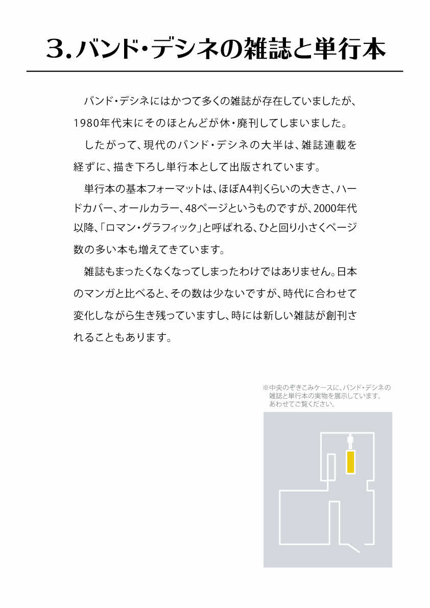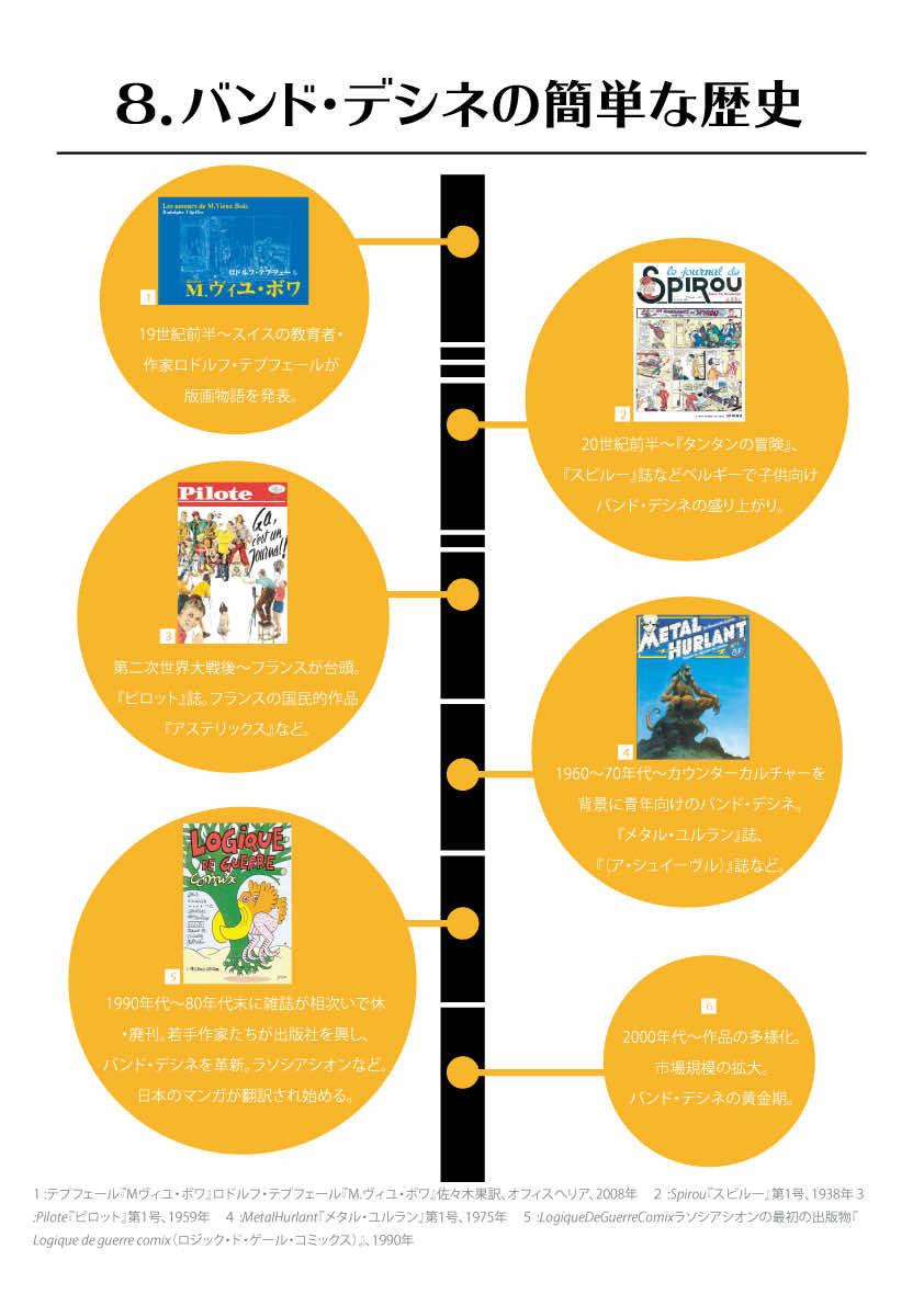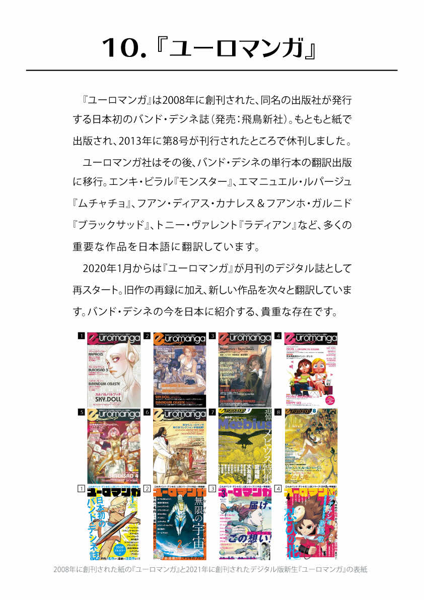 1990年代以降、バンド・デシネの雑誌にとっては受難の時代が続いていますが、時には新しいコンセプトの雑誌が創刊されることもあります。例えば、2011年にはこれから出る新刊単行本を予告編的に紹介する『L’Immanquable(ランマンカブル)』が、2013年にはルポルタージュに特化した『La Revue dessinée(ルヴュ・デシネ)』が創刊されました。