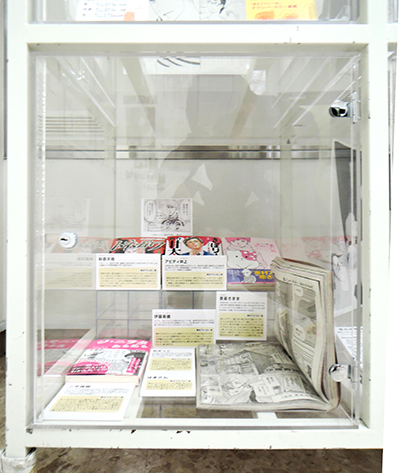 ケース17〜24および壁面右は「ひまわりっ 〜健一レジェンド〜」特集。健一のレジェンドの中から初期の印象的なエピソードを二つ抜粋しました。