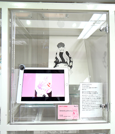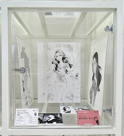 ケース17〜20および壁面下段右は、美人過ぎて薄幸の人生を送る「主に泣いてます」の主人公泉さんの、美しいイラストとコスプレシーンを交互に展開。