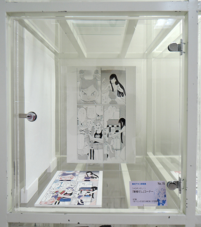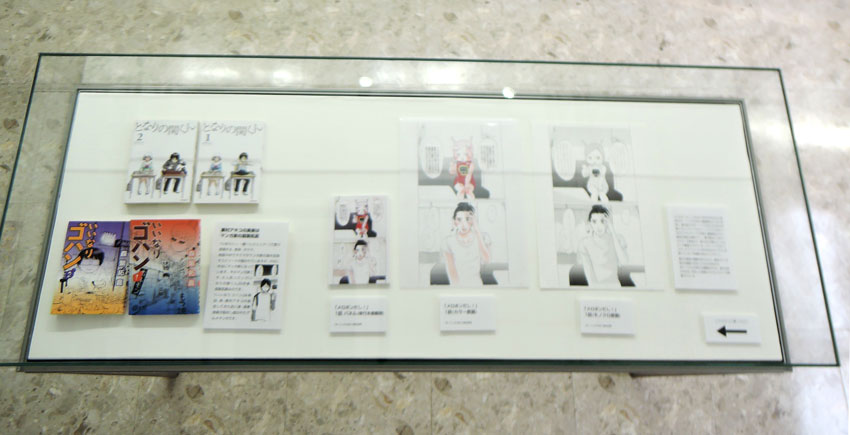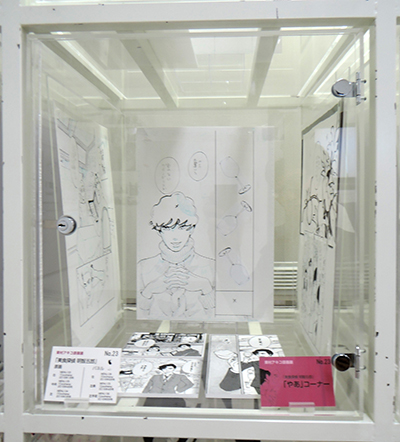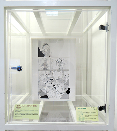 ケース09〜12および壁面中段右は「ママはテンパリスト」特集。東村アキコの育児エッセイマンガである本作は育児の辛さを笑いに転化したヒット作の中から、特に印象深いエピソードをふたつご紹介します。