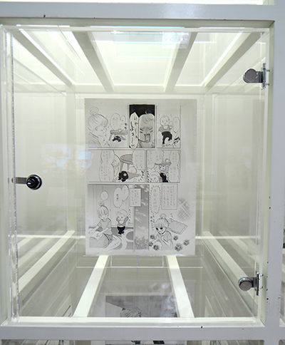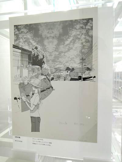 展示の原画は連載初回のもので、巻頭カラーの部分は線画と彩色したものが存在する。