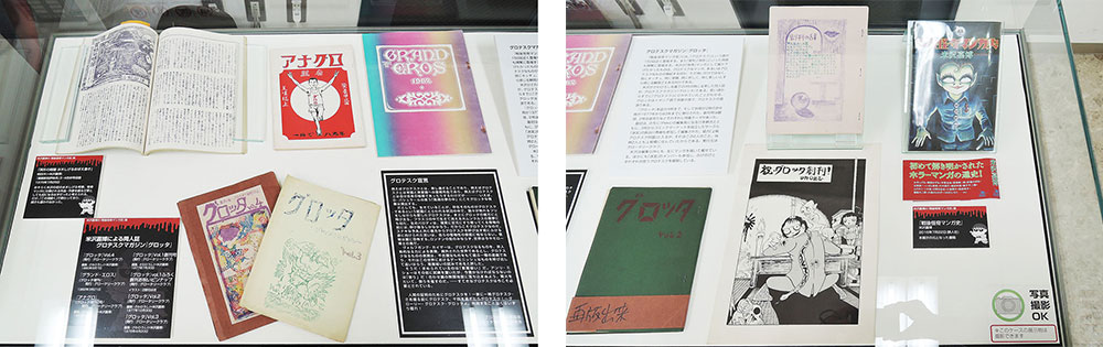 本展示の出展資料はすべて、米沢嘉博記念図書館および現代マンガ図書館の資料です。同人誌『グロッタ』Vol.1~4以外はすべて当館にてお読みいただくことができます。