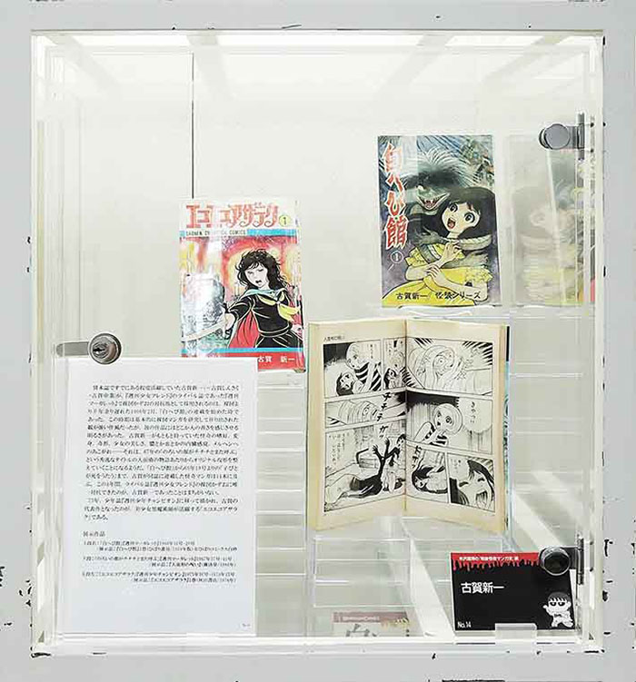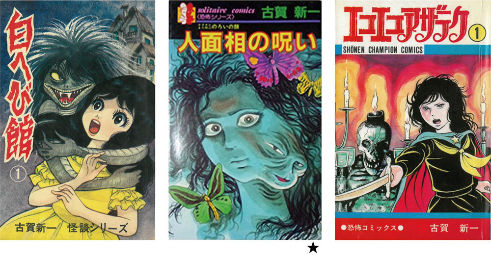 貸本誌ですでにある程度活躍していた古賀新一(=古賀しんさく=古賀申策)が、『週刊少女フレンド』のライバル誌であった『週刊マーガレット』で楳図かずおの対抗馬として採用されるのは、楳図より半年余り遅れた1966年2月、「白へび館」の連載を始めた時であった。この時期は基本的に楳図マンガを研究して作り出された観が強い作風だったが、彼の作品にはどこか人の善さを感じさせる明るさがあった。古賀新一がもともと持っていた怪奇の嗜好、変身、奇形、少女の美しさ、膿とか血とかの内臓感覚、メルヘンへのあこがれ——それは、67年の「のろいの顔がチチチとまた呼ぶ」という秀逸なタイトルの人面瘡の物語あたりからオリジナルな形を整えていくことになるようだ。「白へび館」から69年19号よりの「子びとが死をうたう」まで、古賀が同誌に連載した怪奇マンガは14本に及ぶ。この4年間、ライバル誌『週刊少女フレンド』の楳図かずおに唯一対抗できたのが、古賀新一であったことはまちがいない。