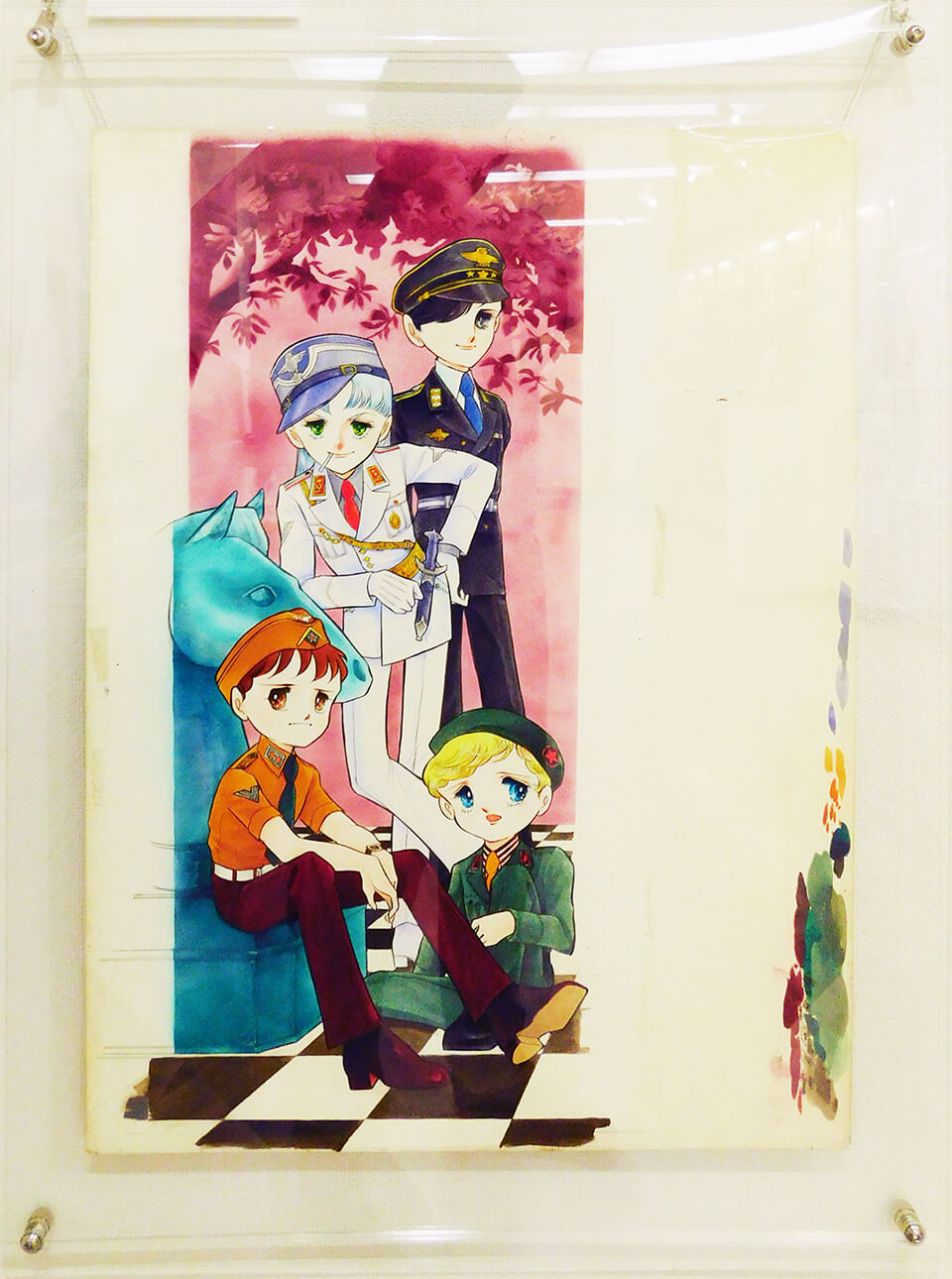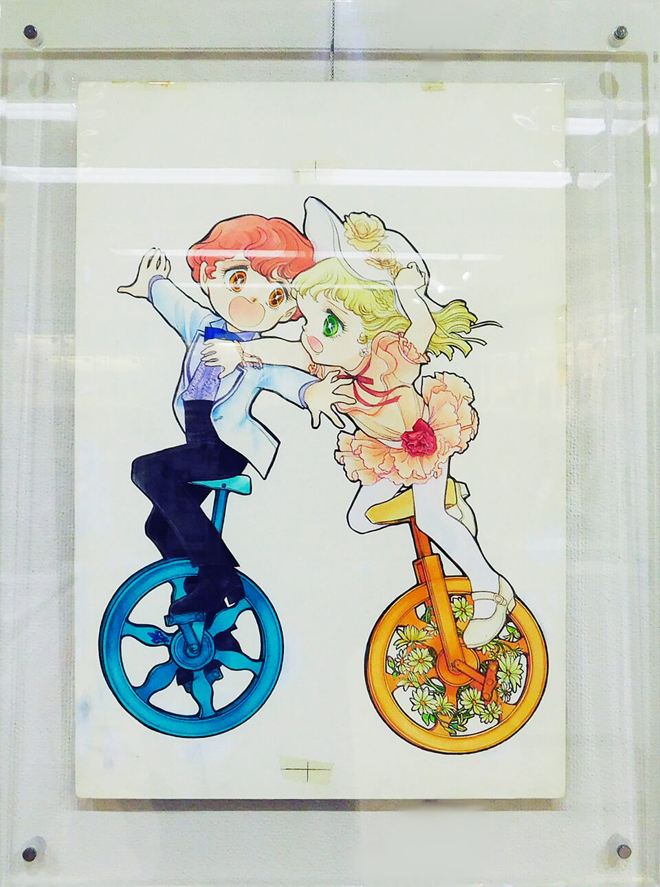 そこで、保存修復科のある東洋美術学校に、保存上問題のある原画の一部について相談をしました。マンガ原画の修復は初の試みとのことでしたが、意欲的に取り組んでいただけた結果、危険な状態だった原画が展示可能なまでに修復されました。その原画を展示するとともに、修復に関するレポートを添付いたします。