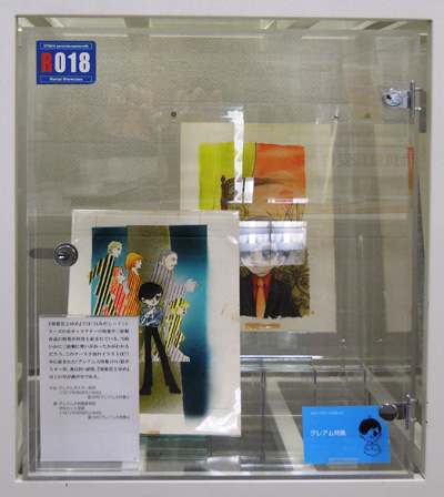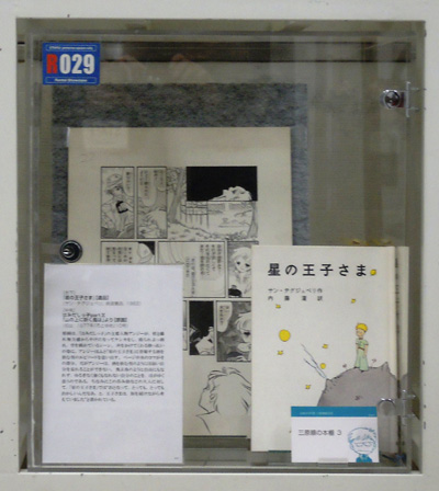 R027-029には、三原作品に登場する書物に関係したシーンの原画と、書物そのものとを同時に展示した。展示されている本の多くは、三原順自身が遺したものである。