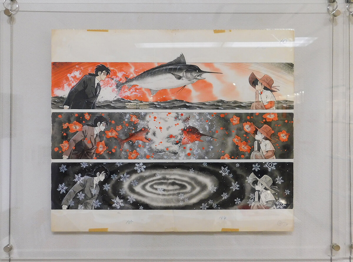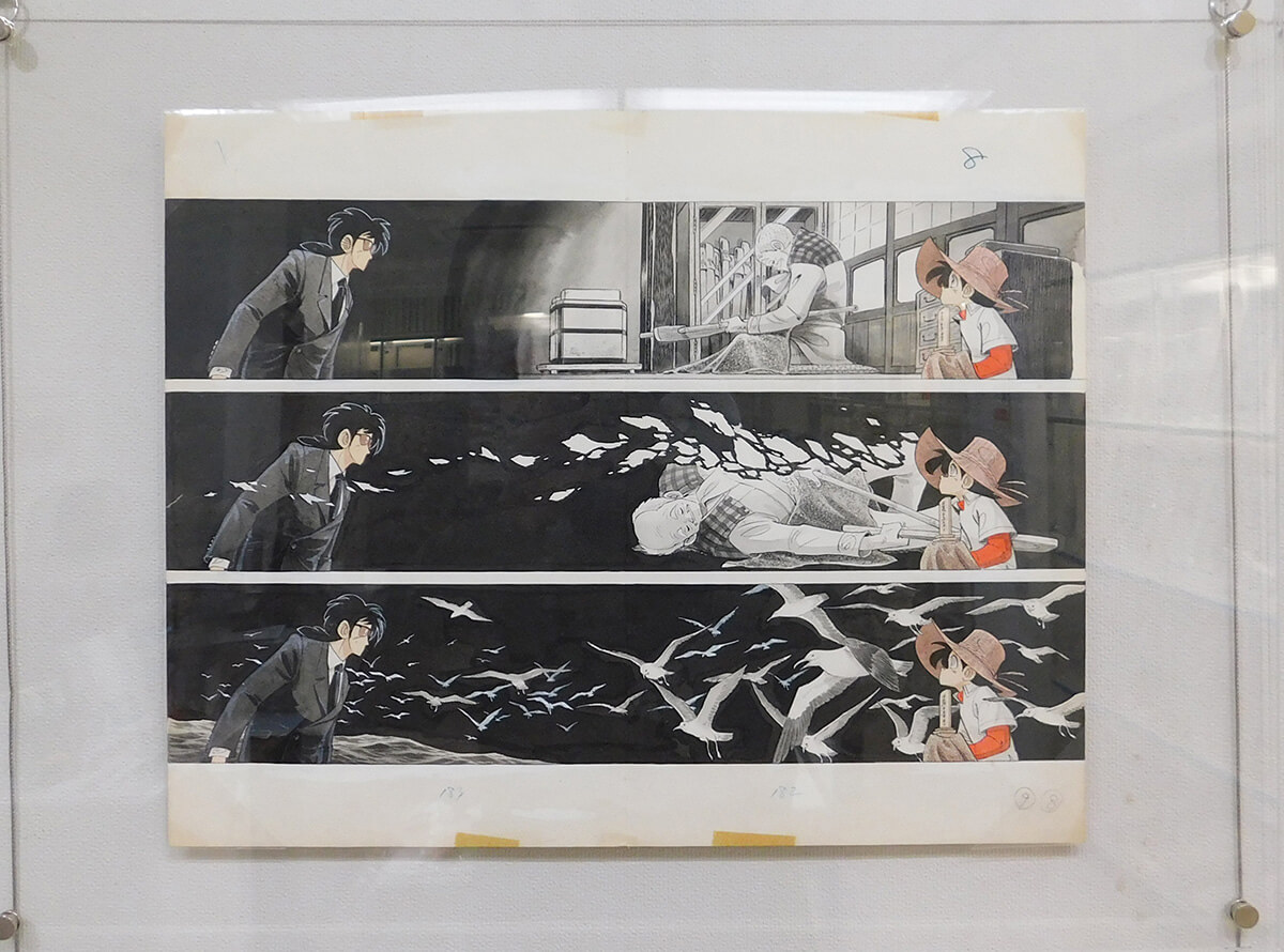 ケースNo.28・29で展示中の原画は、平成版3作目の「鮎の夏2002」よりのものである。本作では、三平の指導でユリッペが鮎釣りに挑み、ふたりの甘酸っぱい関係も描かれている。