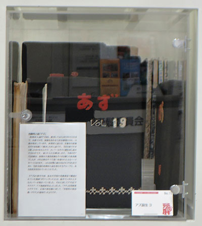 展示品: 『あず』30周年記念号、『あず』40周年記念号表紙パネル、『あず』40周年記念号 布貼りシリアルナンバー付限定版、『アズ漫画研究会 40周年記念展』パンフレット