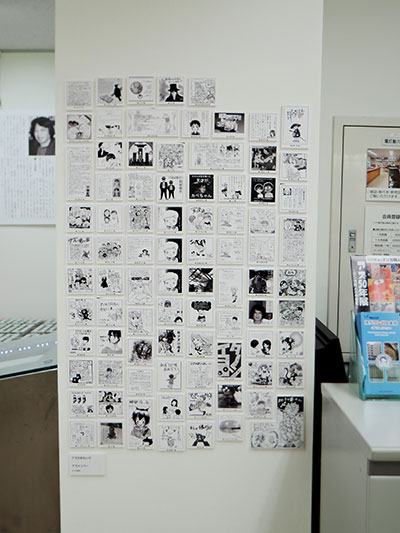 ケースNo.29には陸奥さんのプロデビュー作掲載誌、壁に原画が展示してあります。原画はひと月ごとに展示替えをおこないます。