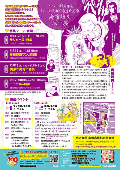内容:魔夜峰央(通称・ミーちゃん)の45年にわたるマンガ家生活についてお話しいただきます。