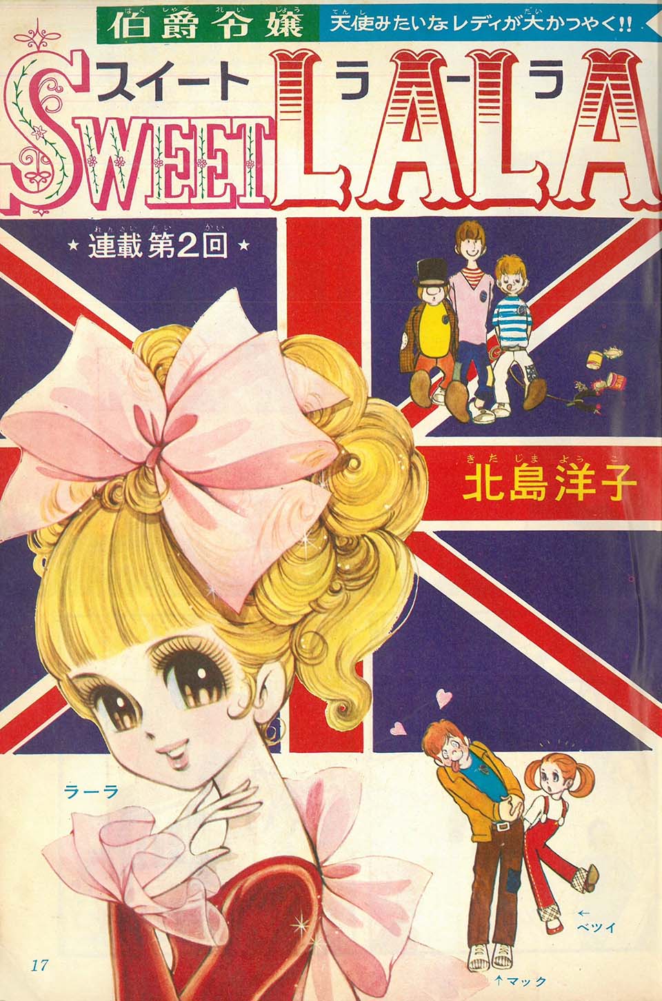 また、北島洋子も「やはりよい夢を追いかけるのには現実的じゃないものを見た方がなんとなく夢が広がるような気がして、よく外国を舞台にしました」と述べています。展示の作品は、海外旅行は解禁されたけれどもまだ一般化していない、1967年に連載開始された北島洋子の大ヒット作。イギリスを舞台に、出会う人々をとりこにしてしまう伯爵令嬢のラーラのお話です。
