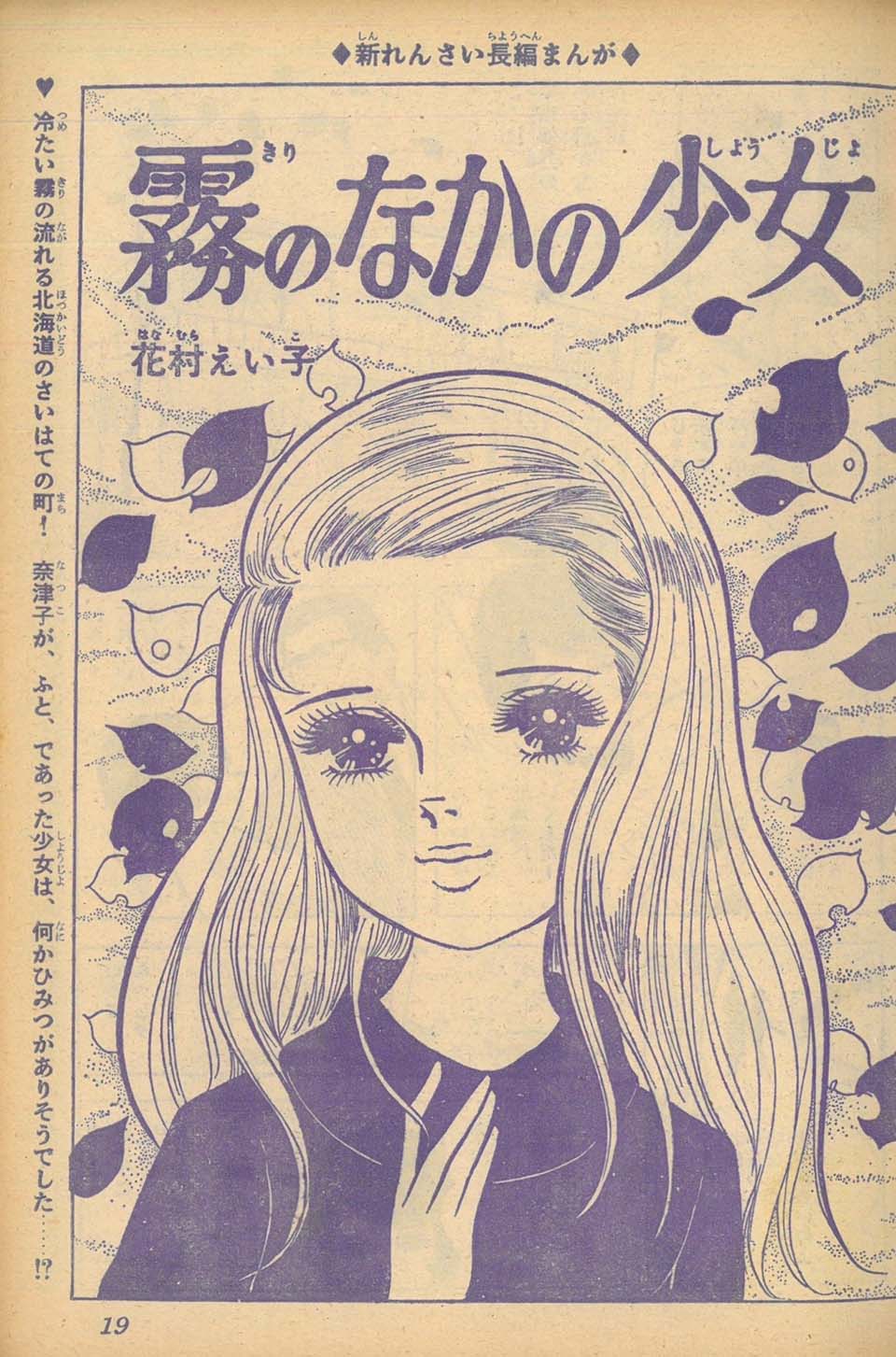 花村えい子は語ります。「上くちびるを描いたらダメって言われたことがありました(笑)。下まつげも。パチパチ描いたんですけども消されちゃったんですよ。ホワイト持ってきて『下のまつげ全部消しなさい。こういう顔描いている人いません』って。その頃は下まつげを描いてる方が雑誌ではいらっしゃらなくて、これはマンガじゃないって言われて。人気作家のそういう絵が定着していましたし。単行本、貸本マンガで描いた時からもうそのスタイルだったんだけど、『これはマンガじゃない』という意見と『新しくていいじゃないか』という意見と真っ二つに分かれて。でも幸いなことにその後はずっと描かせていただいていますけど、……当時はちょっとショックでしたね」。1960年代半ばのことです。当時は、牧美也子や松尾美保子など下まつ毛の無い絵柄が少女誌で大人気でした。貸本ではまったくなかった禁止事項だったとのことです。