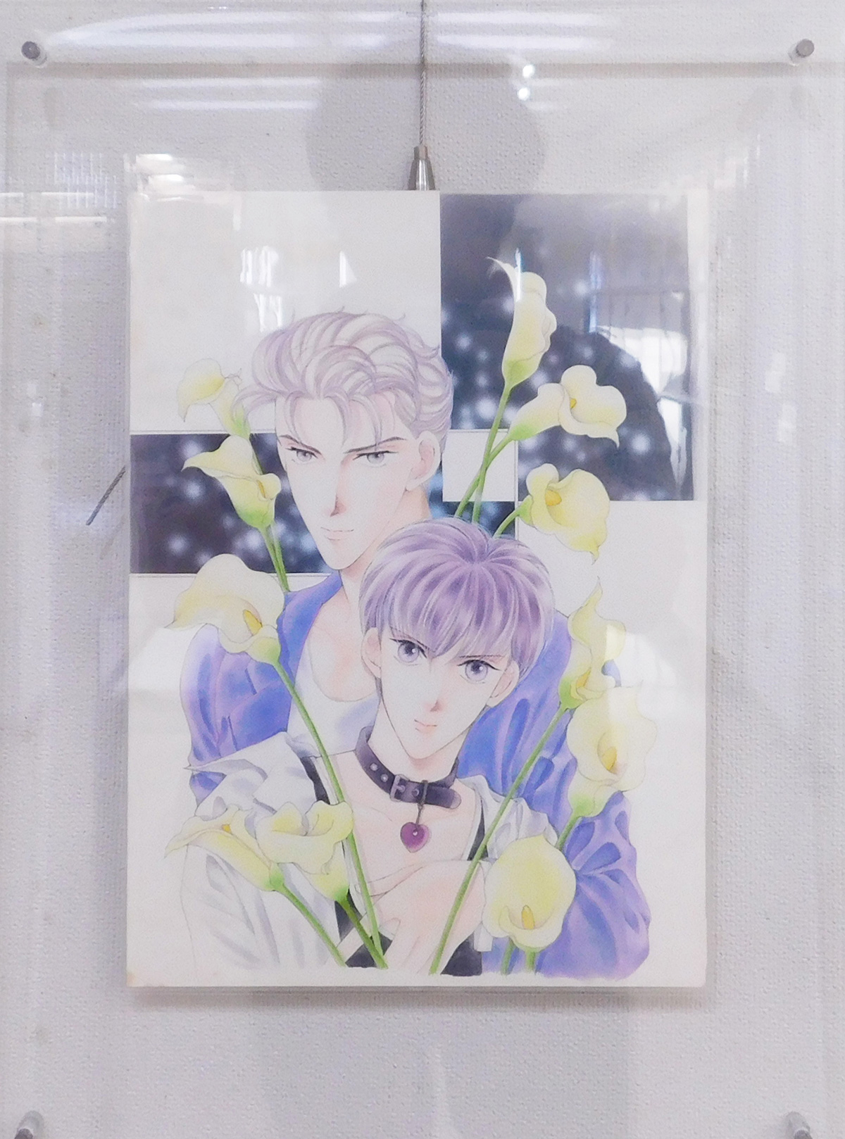 本展では、デビュー以前の貴重な作品や、BLに移行してからの美しいカラー原画を紹介しつつその道のりをたどります。もちろん少女誌時代のカラーイラストもお届けします。
