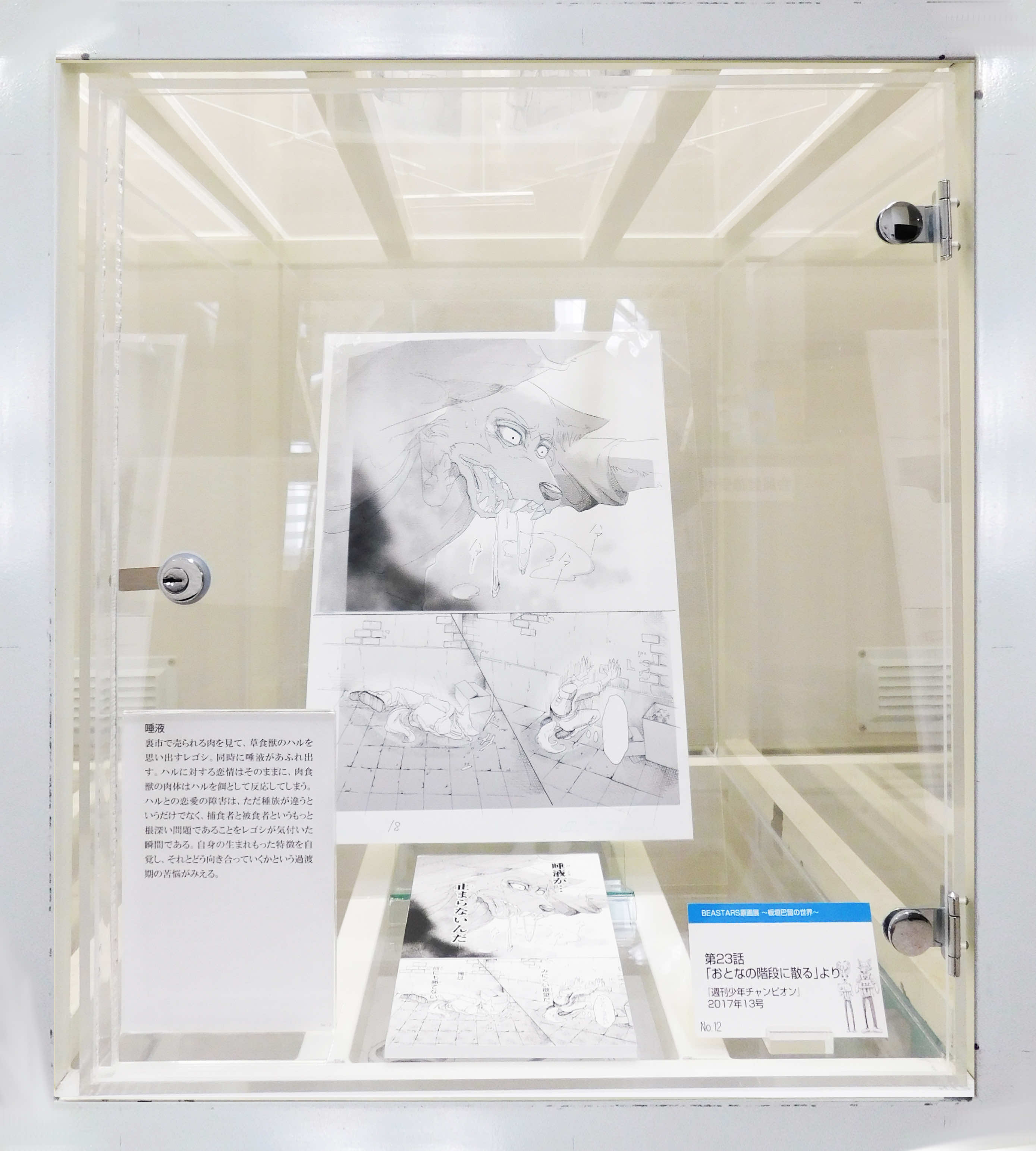 裏市で売られる肉を見て、草食獣のハルを思い出すレゴシ。同時に唾液があふれ出す。ハルに対する恋情はそのままに、肉食獣の肉体はハルを餌として反応してしまう。ハルとの恋愛の障害は、ただ種族が違うというだけでなく、捕食者と被食者というもっと根深い問題であることをレゴシが気付いた瞬間である。自身の生まれもった特徴を自覚し、それとどう向き合っていくかという過渡期の苦悩がみえる。
