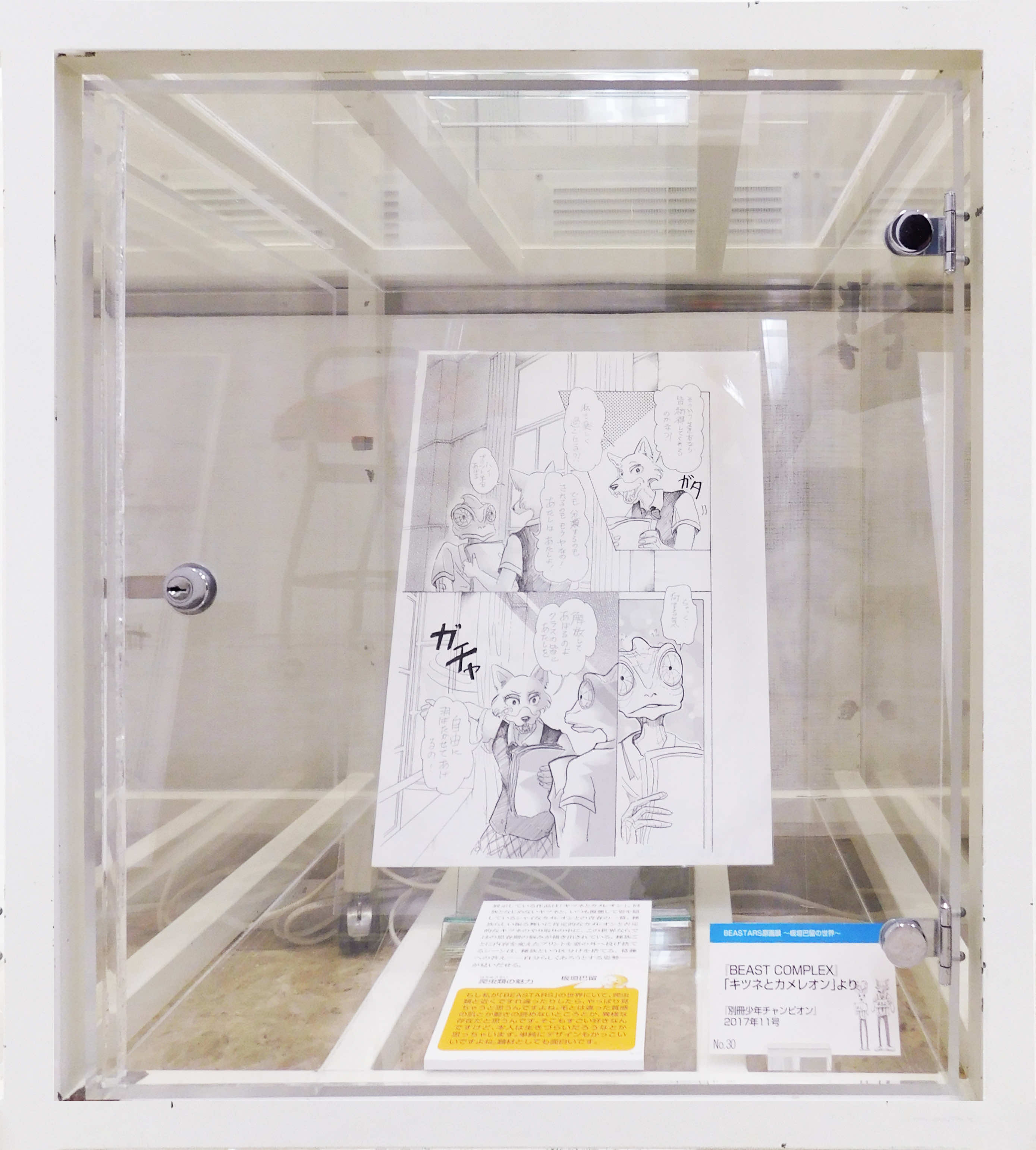 展示している作品は「キツネとカメレオン」。同族となじめないキツネと、いつも擬態して姿を隠しているシャイなカメレオンとの青春の一幕。種族らしい振る舞いに肯定的なカメレオンと否定的なキツネのやり取りの中に、この世界ならではの思春期の悩みが描き出されている。種族ごとに内容を変えたプリントを窓の外へ投げ捨てるシーンは、種族という区分けを捨てる、葛藤への答え―自分らしくあろうとする姿勢―が見いだせる。