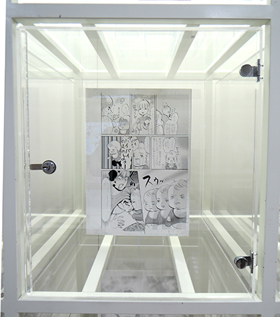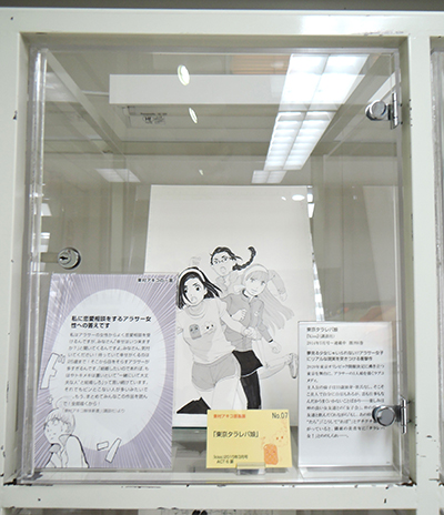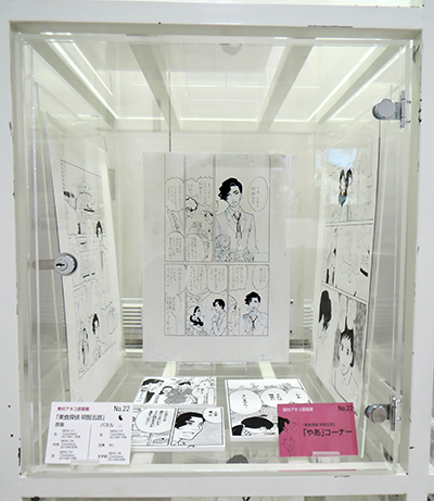 ケース09〜12および壁面中段右は「ママはテンパリスト」特集。東村アキコの育児エッセイマンガである本作は育児の辛さを笑いに転化したヒット作の中から、特に印象深いエピソードをふたつご紹介します。