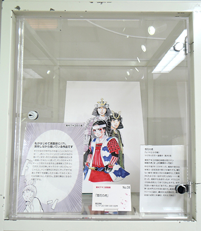 ケース17〜20および壁面下段右は、美人過ぎて薄幸の人生を送る「主に泣いてます」の主人公泉さんの、美しいイラストとコスプレシーンを交互に展開。