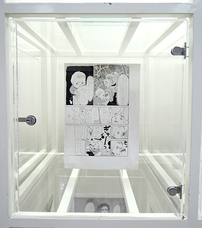 展示の原画は連載初回のもので、巻頭カラーの部分は線画と彩色したものが存在する。