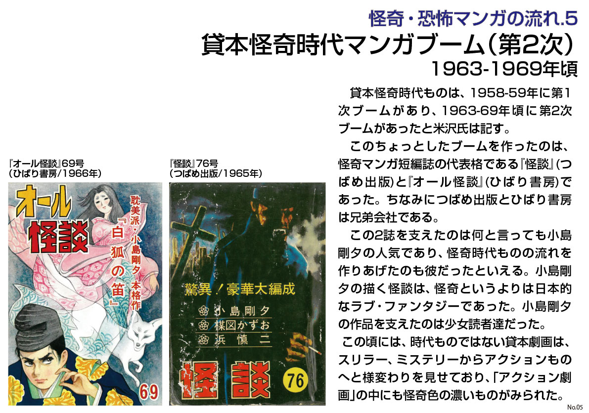 1958年創刊の『怪談』は、59年創刊の『オール怪談』(ひばり書房)とともにしばらくの間怪奇マンガを牽引してゆく。