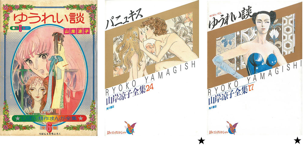この時期登場した紹介すべき作家の一人が山田ミネコである。69-70年頃に貸本として発表された『真夏の訪問者』は、ミステリアスな怪奇ロマンである。ここで驚かされたのは、澁澤龍彦という名前の魔法学者がキャラクターとして登場してくることだ。『黒魔術の手帖』(澁澤龍彦/桃源社)は、当時日本に紹介されていた、 外国のオカルティズムに関する数少ない本で、彼の名は一部では有名だったが、マンガの中に出てくるというのは、考えられない時代だった。71年の中編「魔法使いの夏」には、オカルティックなイコンが散りばめられている。魔法書、人面鳥、ミトラ神、バフォメット、悪魔サルガタナスの呪いのタブレット、バラの幽霊、コボルト、サラマンテル、魔女裁判……これだけのものが一作につめこまれたのは驚くべきことだ。そしてそれは、山田ミネコの趣味の世界を超え、初めて少女マンガに本格怪奇ゴシックロマンがお目みえした瞬間であった。