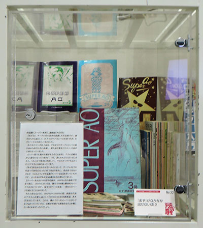 このケースには、肉筆同人誌の『アズ』創刊号から4号までをほぼひと月ごとに交換し順に展示します。