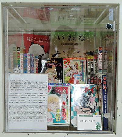 ここには、松島裕子(マンガ家)、関よしみ(マンガ家)、あいきさだむ(マンガ家)、松田慎太郎(マンガ家)、南里桃子(マンガ家)、きむらしんこ(マンガ家)、あさりまゆみ(イラストレーター・絵本作家)、印口崇(マンガ評論家)、甲斐絵恵子(マンガ家)、しばはら・ち(絵本作家)、松原香津美(マンガ家)、ひのもとめぐる(マンガ家)ほかアズメンバー各氏の単行本を展示しました。