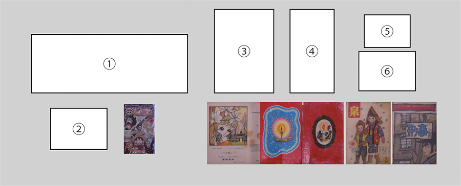 1. 最初にカバーと単行本の附属品(オビやチラシなど)を外す。マンガよりひと回り大きいサイズのビニールを用意し、マンガのカバーに合わせて上下に切り込みを入れて、内側に折り込む。 |