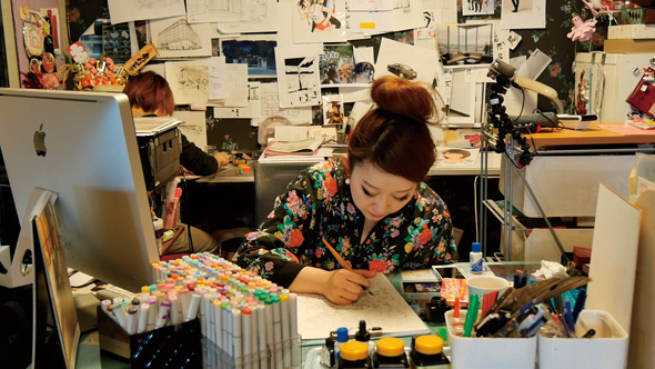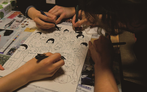 各期共通展示 ◎東村プロ出身マンガ家紹介コーナー ◎映像:「東村アキコオールスターズ」イラスト制作風景