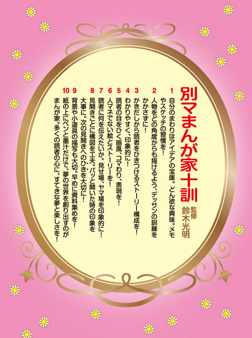 本展示では、別マまんがスクールのシステムと、鈴木光明の役割を紹介し、日本の少女まんがの新人育成システムがどのように成立してきたかに光を当てる。