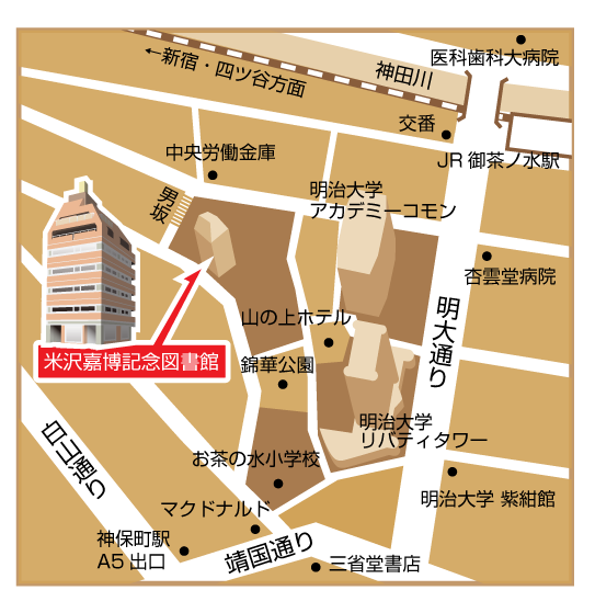 アクセス JR御茶ノ水駅より徒歩7分、水道橋駅より徒歩8分、地下鉄/神保町駅より徒歩8分
